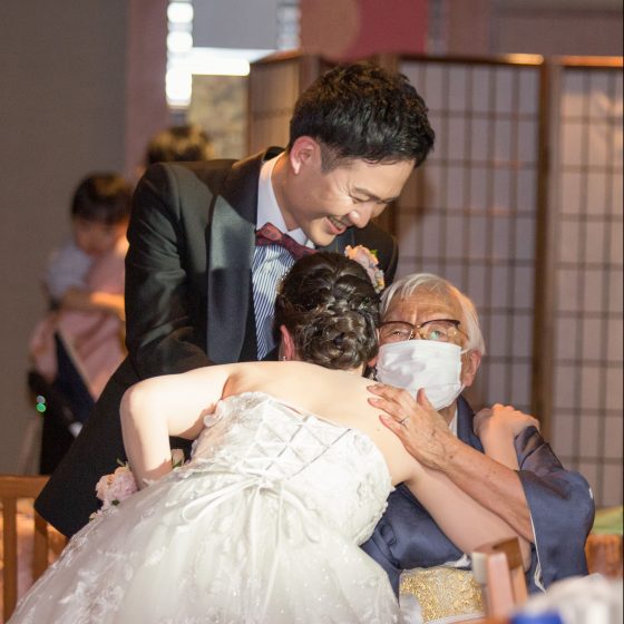 当日を迎えるまでも、挙式・披露宴直前もずっと緊張しておりましたが、会場に入り、お越し頂いた皆さまのお顔を見た途端、心がほぐれ嬉しい気持ちでいっぱいになりました。お忙しい中、県内外、遠方は北海道から私たちの為にお集まり頂き、感謝の気持ちしかありませんでした。幼い頃から現在に至るまで、私たち二人の人生の様々な場面において、その時その時、本当にお世話になった大切な皆さまがこのように一堂に会する事なんてそうそうないので、非常に感極まる、素晴らしい、貴重なお時間を共有させて頂きました。また、諏訪さんを始めとするスタッフの皆さまには約半年の間、本当にお世話になりました。私たちの都合に合わせ、早朝や夕方から打ち合わせをして下さったり、ドレス選びも納得がいくまで試着会を開いて下さりました。また料理やウェディングケーキも食材から選ばせて頂き、世界にたった一つの素晴らしいメニュー・ケーキを一緒に考えて頂き、実現して下さりました。私たちの願いを全て叶えて下さり心より感謝申し上げます。この結婚式は私たち夫婦にとって一生忘れる事のない、温かく幸せなかけがえのない想い出となりました。本当にありがとうございました!