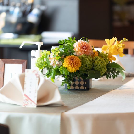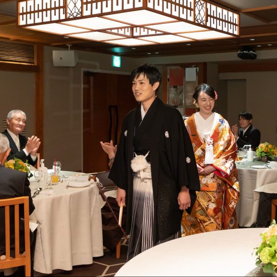 鶴岡八幡宮で挙式を行うことを既に決定しており、挙式後に食事ができるところを探してしました。参列者には高齢の親族も多く、挙式後の移動を極力控えたかったため、鎌倉駅周辺に絞って検討しており、鎌倉駅と神社のちょうど中間に位置するKOTOWA鎌倉を真っ先に見学させていただきました。親族だけの披露宴となると、あまり大きな会場では寂しい雰囲気になってしまうと心配していましたが、MIZUHA(瑞葉)という小さめの会場もあり、天井が低く落ち着いた和を基調とした雰囲気がとても気に入りました。また、見学の際に出していただいた料理も大変美味しく、スタッフさんたちも皆さん明るく接していただけたため、ここで披露宴をやりたいと、即決しました。