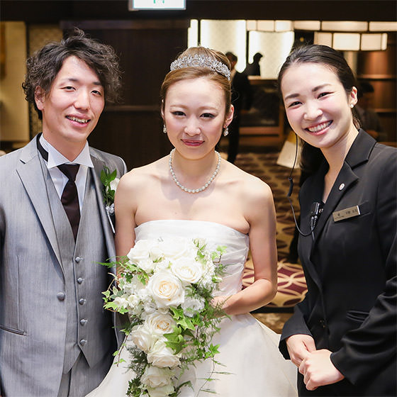 自分たちが主役ということで普段一緒に働いてる職場仲間や友達から注目を浴びるという事は緊張しましたが、感動を与えられるような式ができて本当に良かったと思っています。