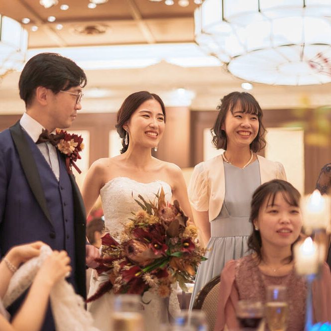 当日までは派手な演出を取り入れすぎていないか不安でしたが、ご参列いただいた多くのゲストからも「ご時世柄、最近派手な演出の結婚式が少ないから、斬新な披露宴だった、楽しかった」と大好評でした。