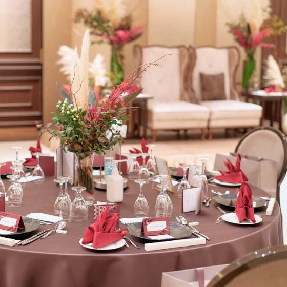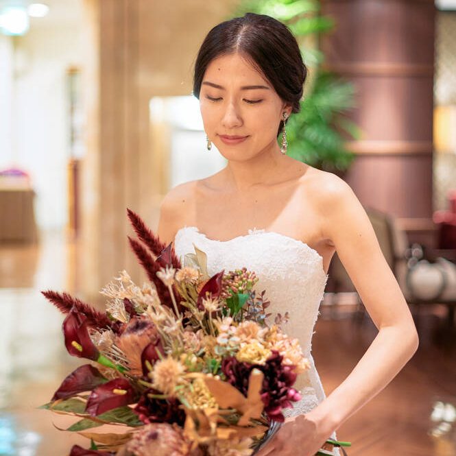 内装、特に装花に関しては非常にこだわっており、秋をイメージし、かつ、可愛すぎず壮麗さを損なわないという難しいリクエストでしたが、当日の会場は思った通りの内容で非常に満足しました。(今でも部屋に一部飾らせていただいてます。)