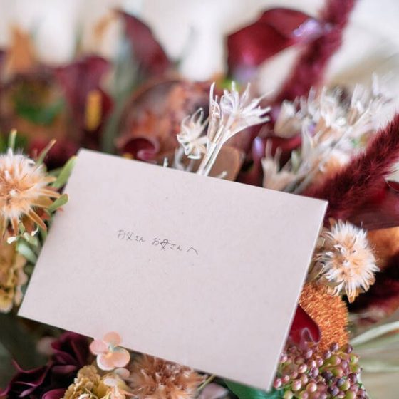 アドバイスできるほど優等生ではないですが、やりたいことが決まってなくても、誰にどんな思いを伝えたいかをプランナーさんに伝えたら何でも実現してくださると思うので、まずは相談して夫婦で一緒に準備を頑張ってください(笑)。