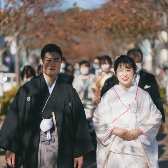 新婦の地元が鎌倉で、幼少期から縁がある鶴岡八幡宮で挙式をあげたいと思っていました。親戚が多い為移動は最小限にしたいということもあり、一番近くの披露宴会場であるKOTOWAさんに決めました。ただアクセスがいいだけではなく、散歩ついでにパンフレット等あればもらおうと立ち寄った際、対応してくださったスタッフさんが丁寧で素敵な方だったことに安心感がありました。中に入ると外の小町の賑わいから一変して落ち着いた雰囲気のエントランス、会場の照明に和紙を使っていたりと和モダンという洋すぎない和すぎない、けれども鎌倉らしい会場で披露宴をあげるにはぴったりだと思い、ここでやりたいと強く感じました。また会場でプロジェクションマッピングができると聞き実際に見せていただきましたが、演出にワクワク感が足されより楽しい披露宴になると思い決めました。