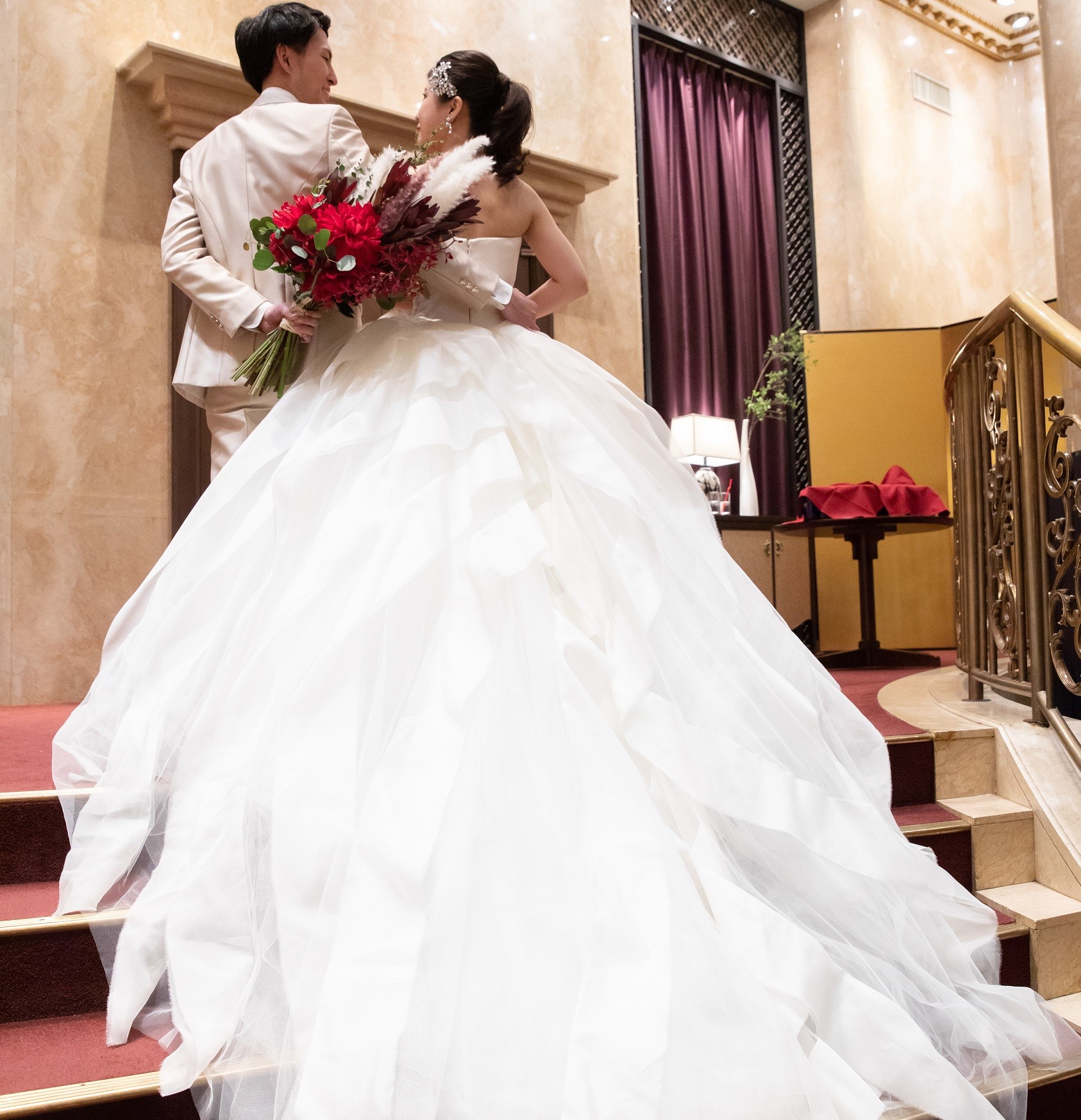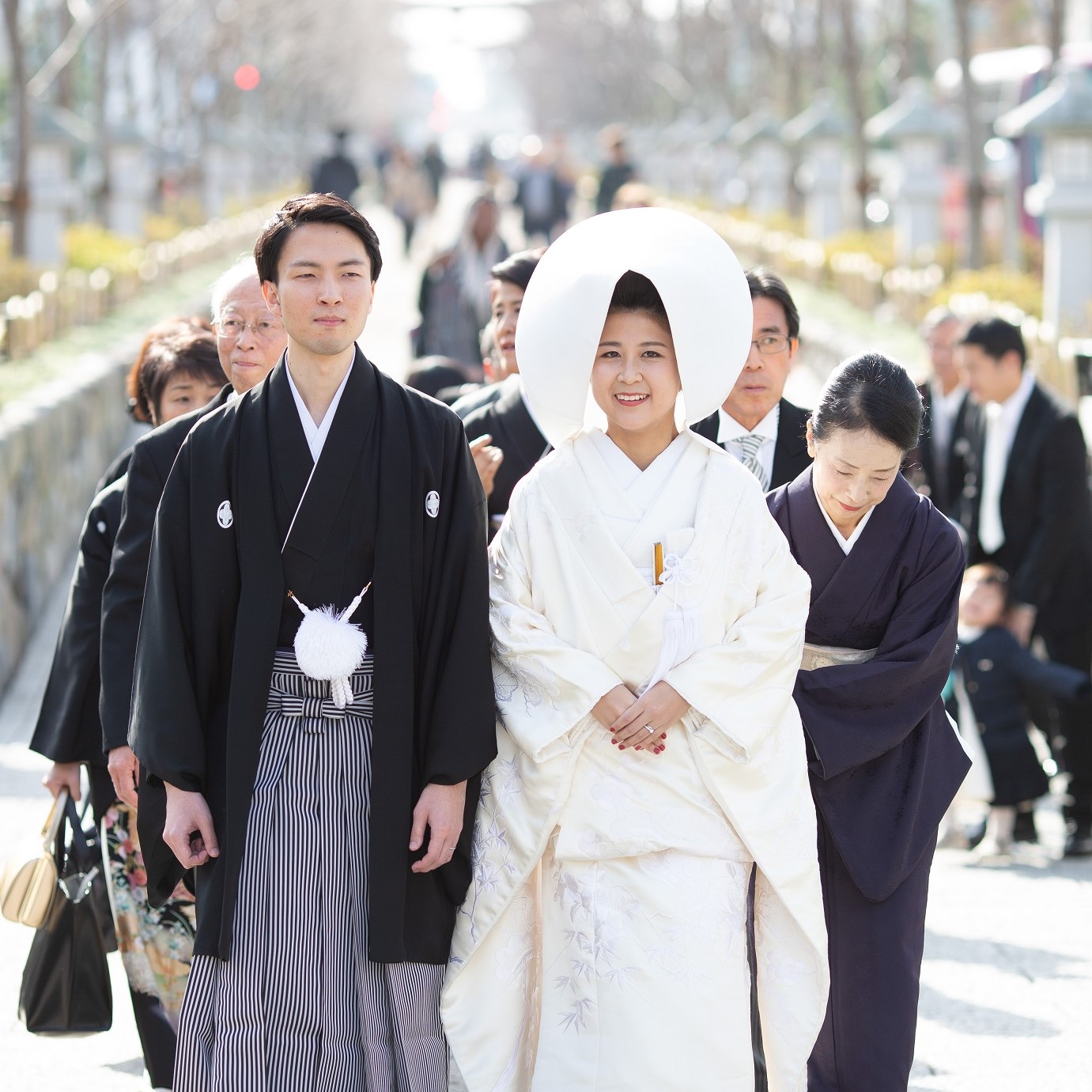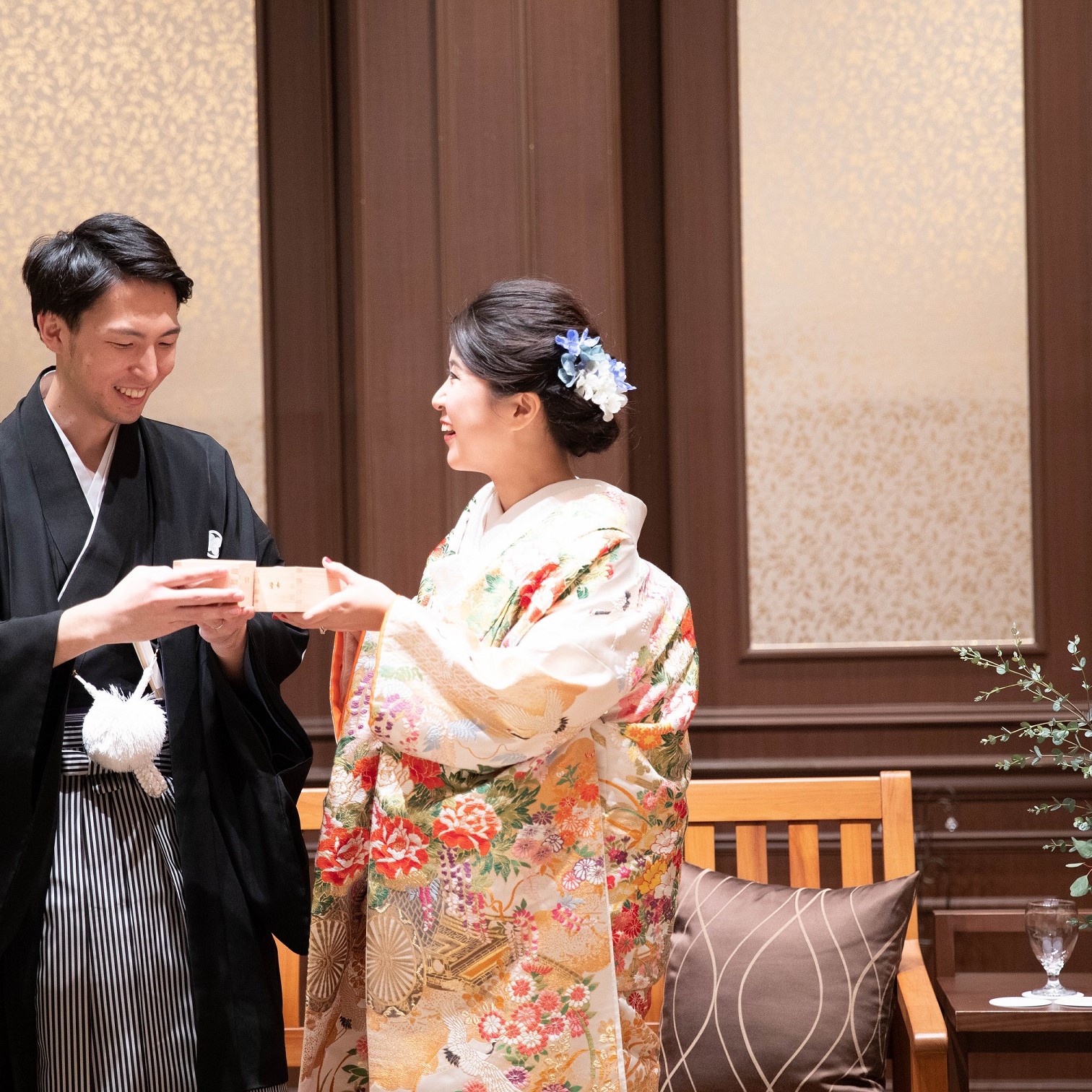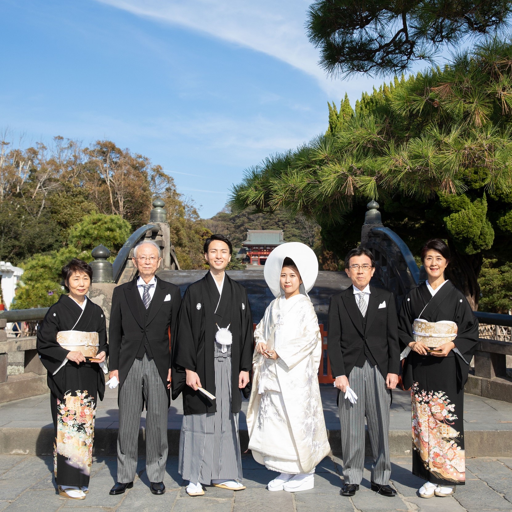 鶴岡八幡宮での挙式はとても華やかなものとなり、介添さんがいつもそばにいて優しくサポートしてくださったおかげで、慣れない袴・白無垢での時間も安心して過ごすことができました。またヘアメイクについては、白無垢・色打掛・ドレスに合わせて3種類ものヘアセットとメイクをお願いしたにもかかわらず、すべて思い描いていた通りに仕上げてくださって感動しました。