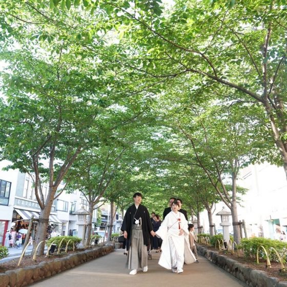 鶴岡八幡宮から歩いて披露宴会場に迎えるところが、