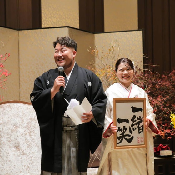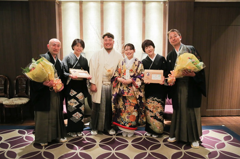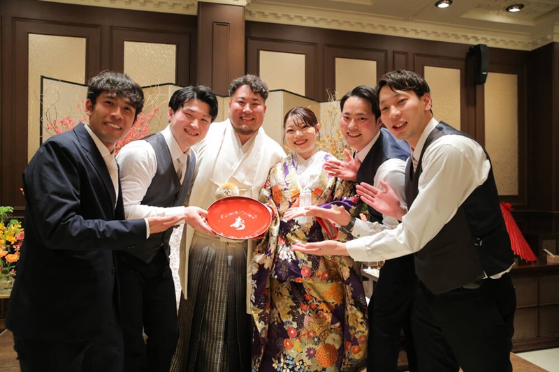 あえて新婦のお色直しの色打掛の色を新郎に知らせずに、当日他の列席してくださった皆様と同時にお披露目するという形をとったのですが、プロデューサーさんから様々なご提案をいただきそれぞれ別の場所から登場するというサプライズもできてすごく満足でした。