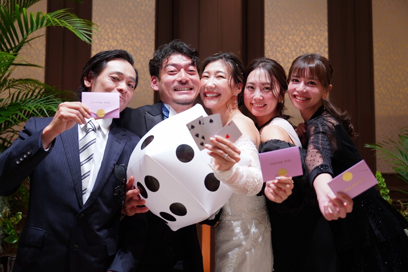 夫婦共々『よく食べ、よく飲み、よく喋る』ので、馴れ初めムービーなど、不要なものは一切盛り込まず、ゲストの方々ととにかく交流を持つことに全集中しました。