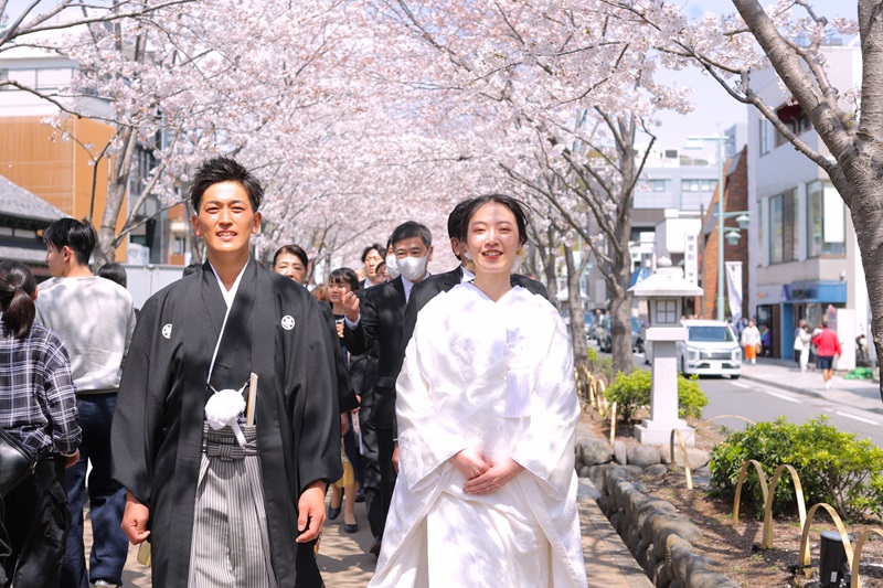 披露宴会場が鶴岡八幡宮から徒歩圏内という立地と、桜咲く段葛を歩けるということが大きな魅力でした。