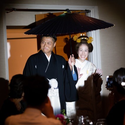 披露宴会場に入場する際に担当プランナーさんが「今日は思い切り楽しんでくださいね!」と声をかけてくださいました。ゲストの皆様が温かく明るい方々で笑顔溢れるとてもにぎやかな宴となり、思いきり楽しむことができました。