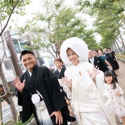 数日前からお天気を心配していましが、挙式では雨もほぼ降ることなく、鶴岡八幡宮への道中で参拝に来られていた方々に祝福の言葉をかけてもらえて幸せな気持ちになりました。