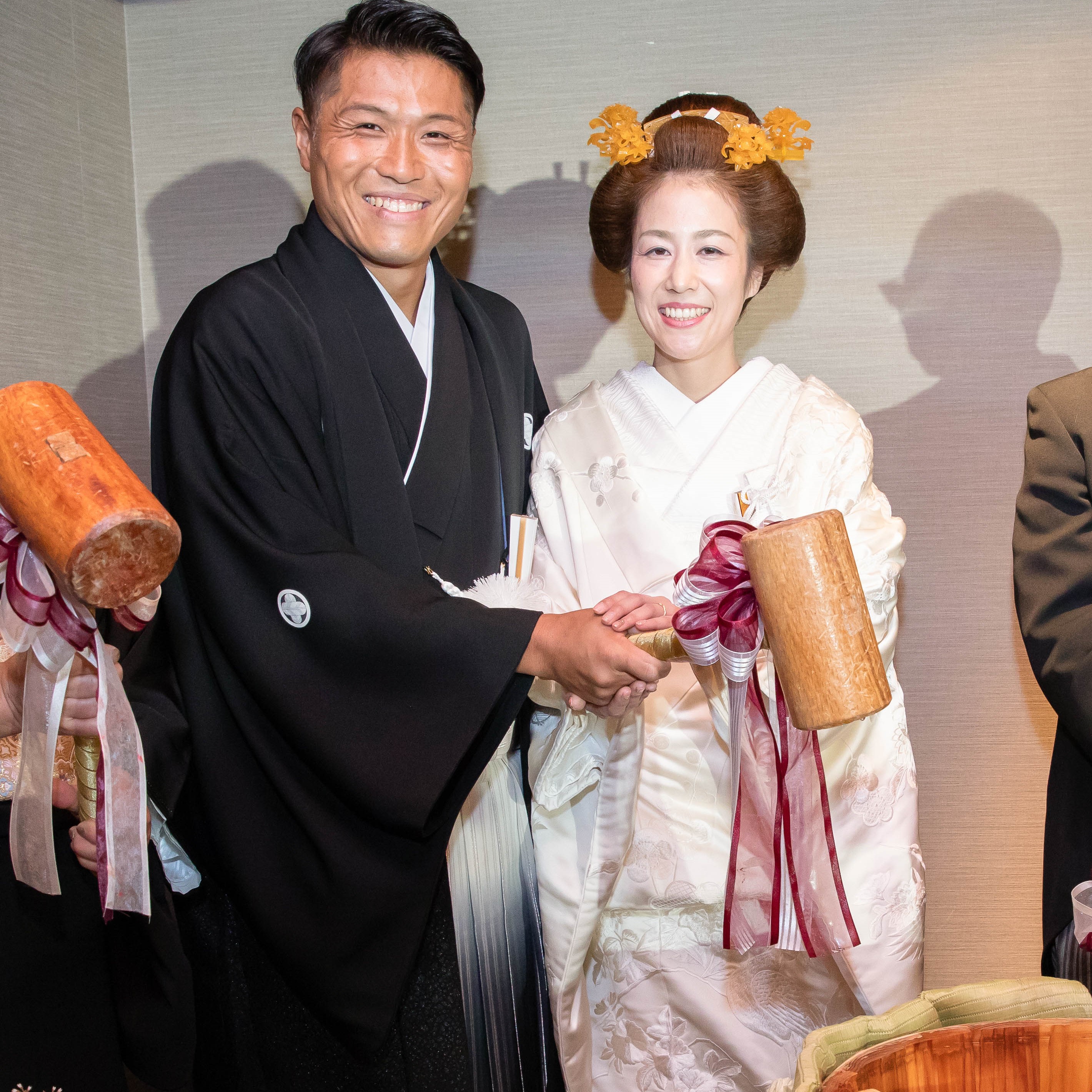 披露宴では鏡開きを行いました。升に注がれた日本酒で乾杯したのも和婚ならではの演出でよかったなと思います。