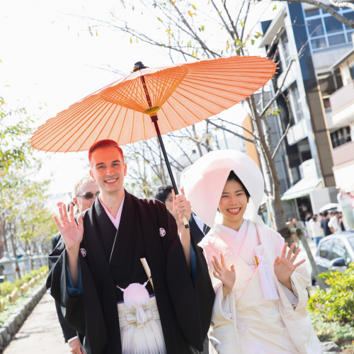 神前式は特に家族や親戚と過ごす素敵な時間になりました。鎌倉に遊びに来ていた知らない方たちからもお祝いの言葉をいただいたり、心配していたお天気にもかなり恵まれて、挙式も盛大にできたので楽しかったです。