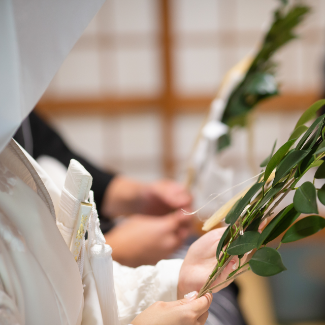 白無垢に憧れていたのでちょっと珍しいデザインに決めました。だいたいのものは鶴が刺繍されていたのですが、そういうのは一切なく松や菊、藤の花がメインになっている着物にしました。さらに外で親族のみならず友人や観光客のみなさんにもせっかくなら柄が分かるといいなと思い手刺繍のものを選びました。