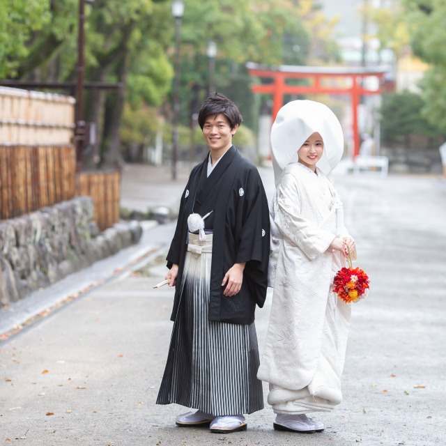 様々な結婚式の形がある中で、私たちはお宮参りや七五三・初詣など、幼い頃より親しみのある神社での挙式に憧れがありました。2人の故郷である神奈川で神前式をできる神社を探したところ、朱色の本殿・舞殿が美しい鎌倉の鶴岡八幡宮に心惹かれました。