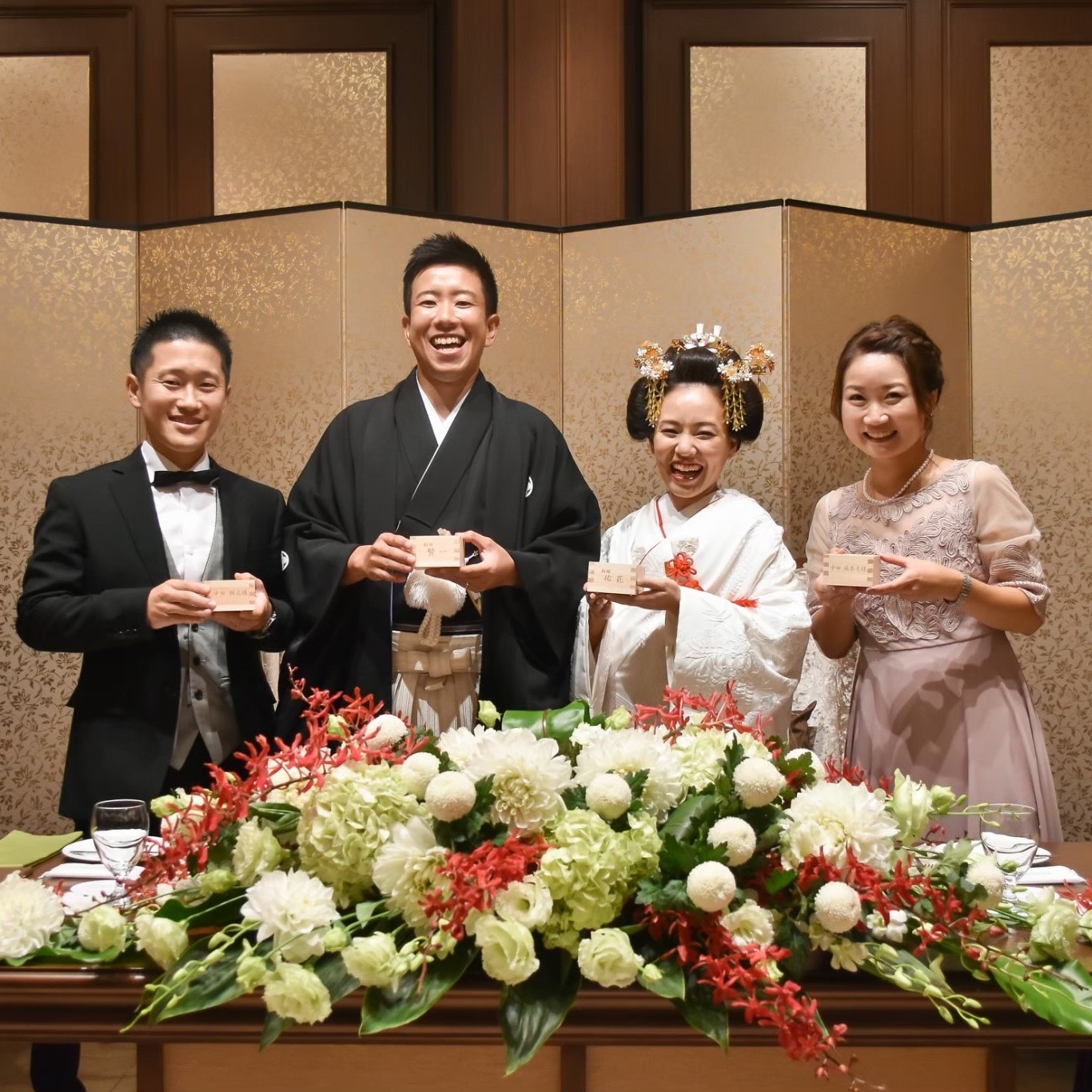 和婚らしさを全面に出したかったので、お色直しは白無垢→色打掛でウェディングドレスは着なかったり、ウェディングケーキも無しにして代わりに席札枡を使った鏡開きをしました。また、来てくれた人にゆっくり楽しんで欲しかったので、あまり大きな演出は入れず歓談の時間を多めにとりました。お料理も料理長と打ち合わせをして決めたこだわりのメニューで、参列した方からは「今までで一番美味しい料理だった!」と言われとても嬉しかったです。