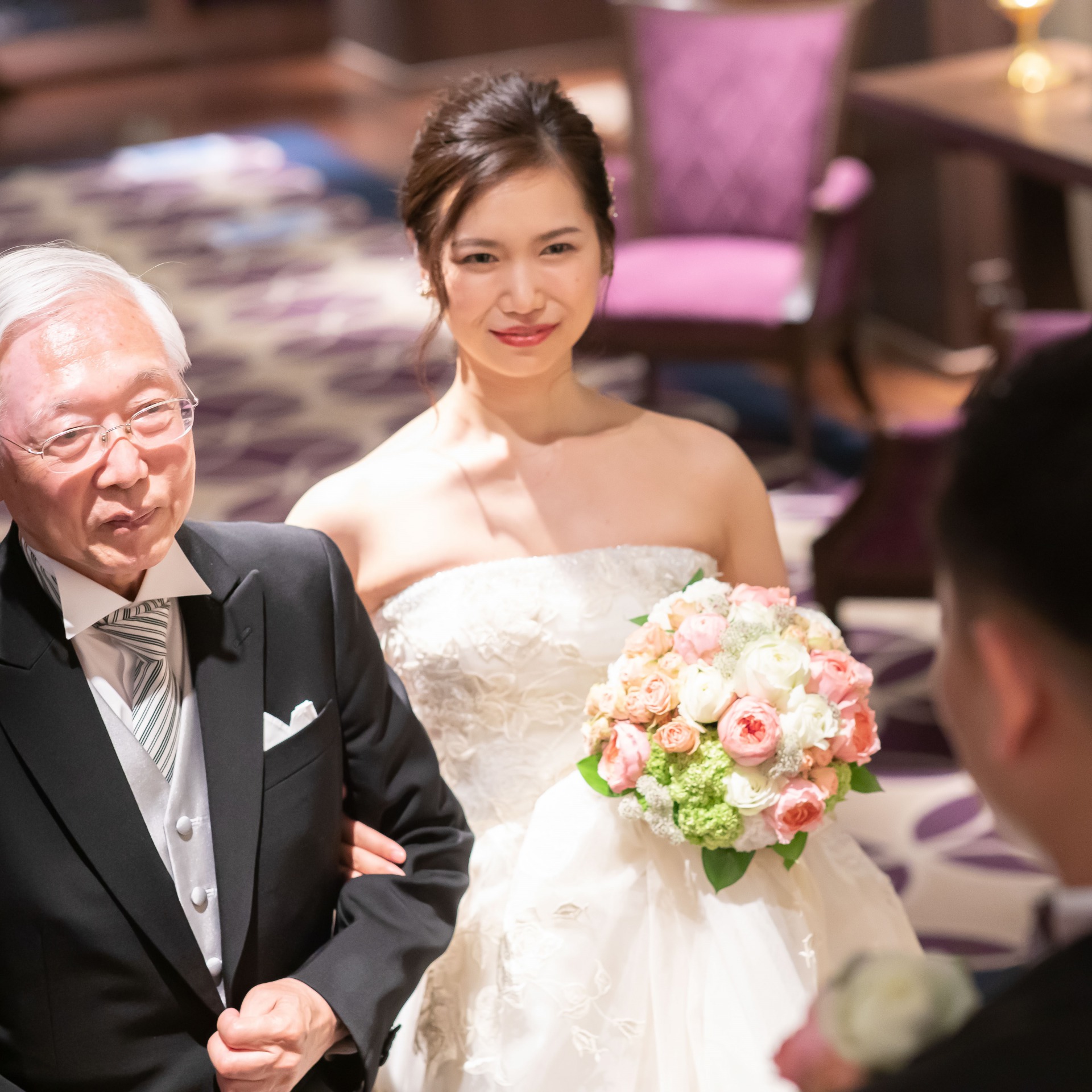 ウエディングドレスでの入場の際、新婦が新婦父と一緒に登場できたり、和婚とチャペル婚の良いところ取りを提案して頂き、即採用。