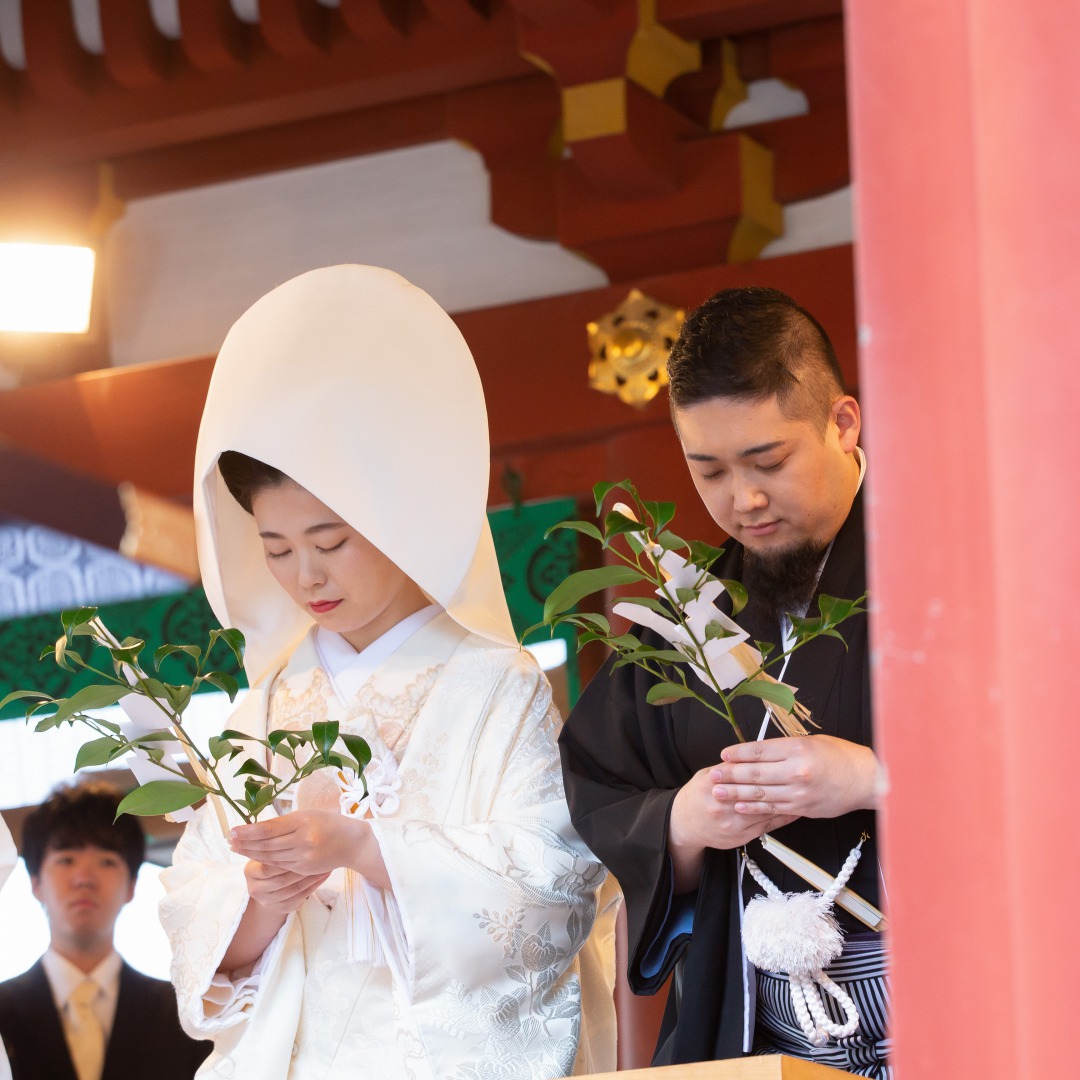 八幡宮で式を挙げられるということが何よりでした。新婦は白無垢に地毛で日本髪が結えることをとても楽しみにしていました。