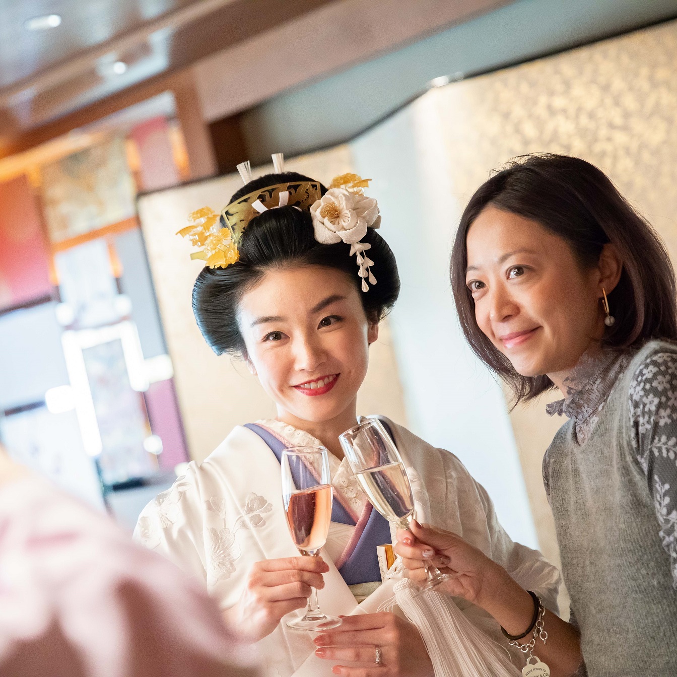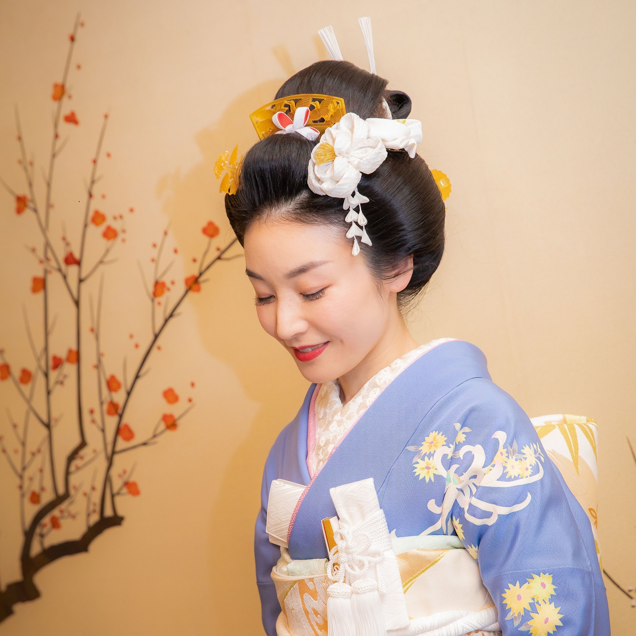 もう一つ、文金高島田の地毛結いにご対応可能というのもポイントに。リハーサルで輪郭に合わせてくださるので、自然なスタイルに造形していただけました。かつらを試したことがあったので、違いは明らかでした。