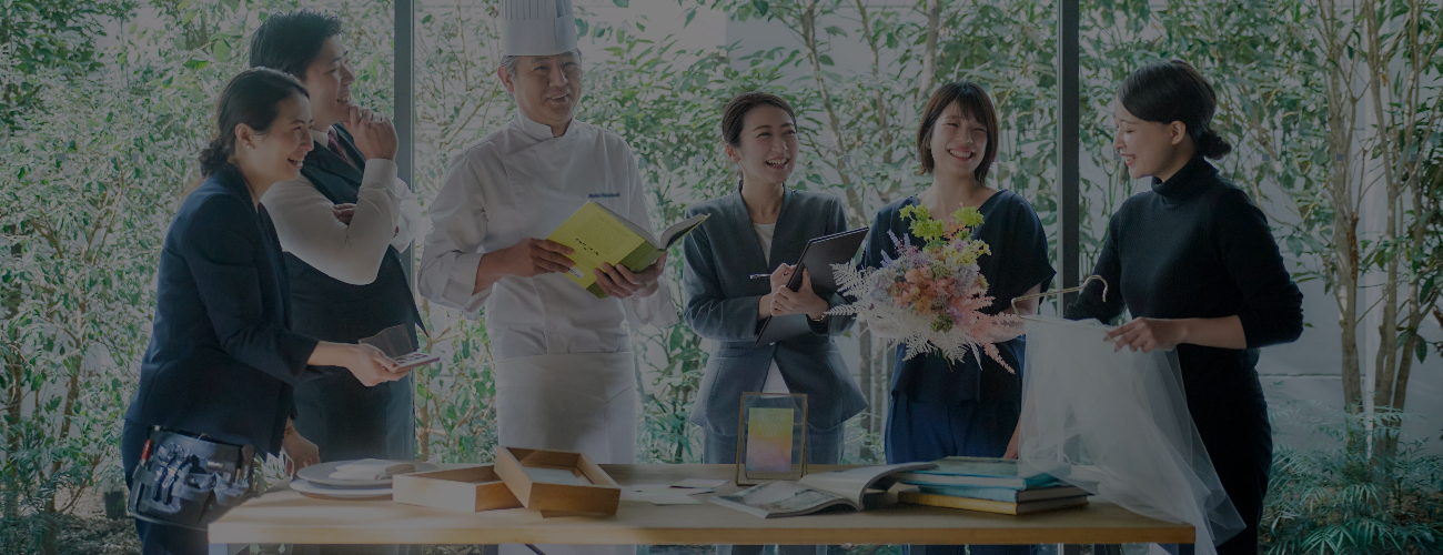 お打合せから挙式当日まで、おふたりに常に寄り添いお手伝いをさせて頂くのが、私たち「ウエディングプロデューサー」です。おふたりとじっくりお話させていただきながら想いを形にし、世界にたった一つの最高の式を実現するための様々な提案・サポートをさせていただきます。